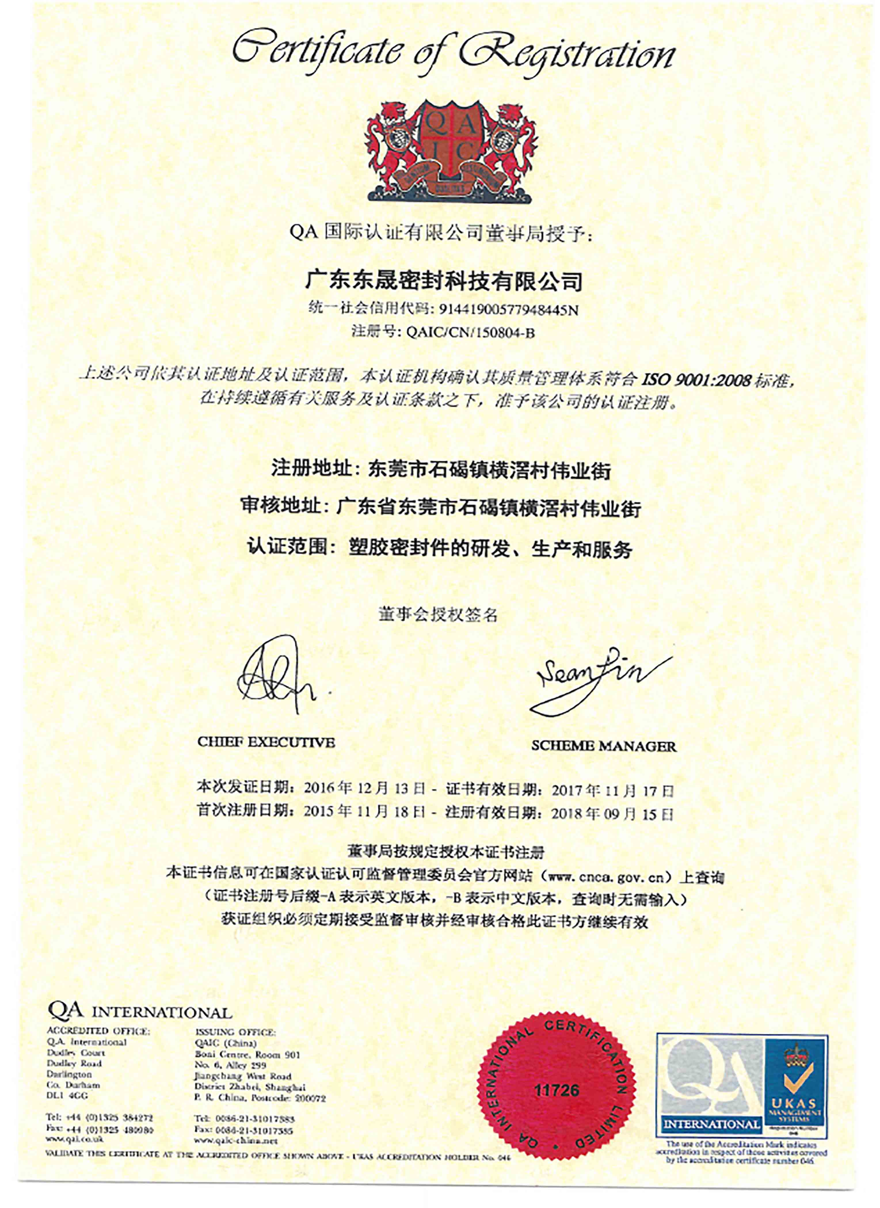 東晟密封榮譽資質每一份榮譽源于我們對品質的不斷苛求